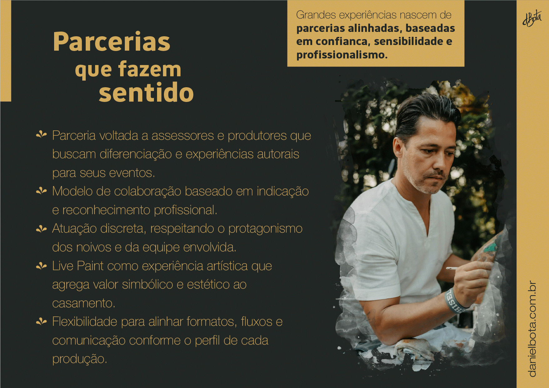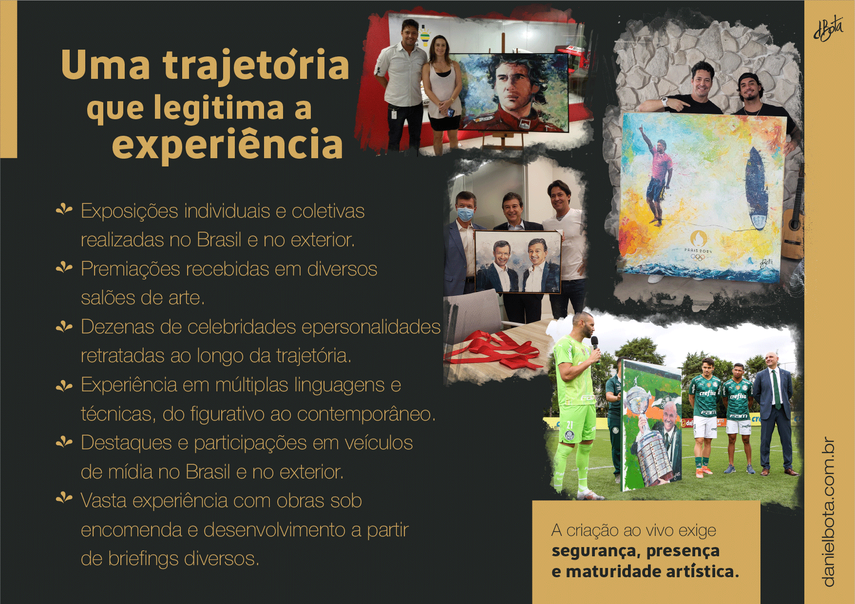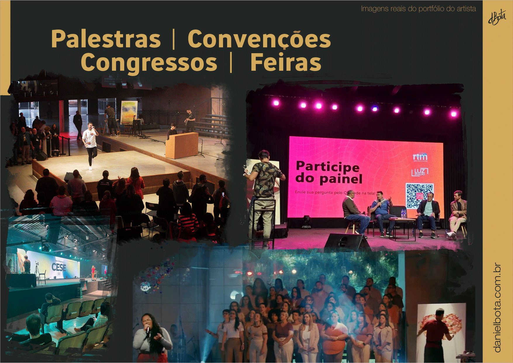 Um dos diferenciais da minha arte em todos esses anos tem sido as pinturas ao vivo (Live Paint) em eventos especiais como: cerimônias de casamento, eventos institucionais, corporativos, bem como, eventos culturais, shows, celebrações, ativações, homenagens, palestras, convenções, congressos e feiras.